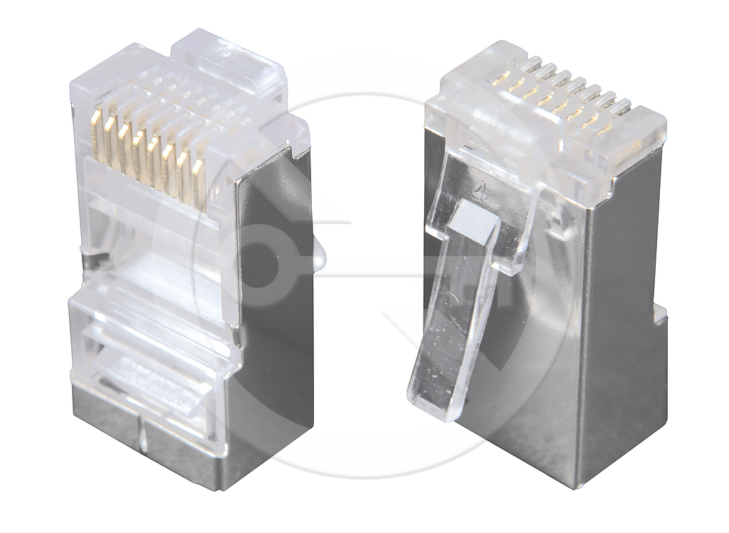 Stíněný konektor RJ45 8p8c. Pro vodič drát, kulatý kabel. Bez vložky.