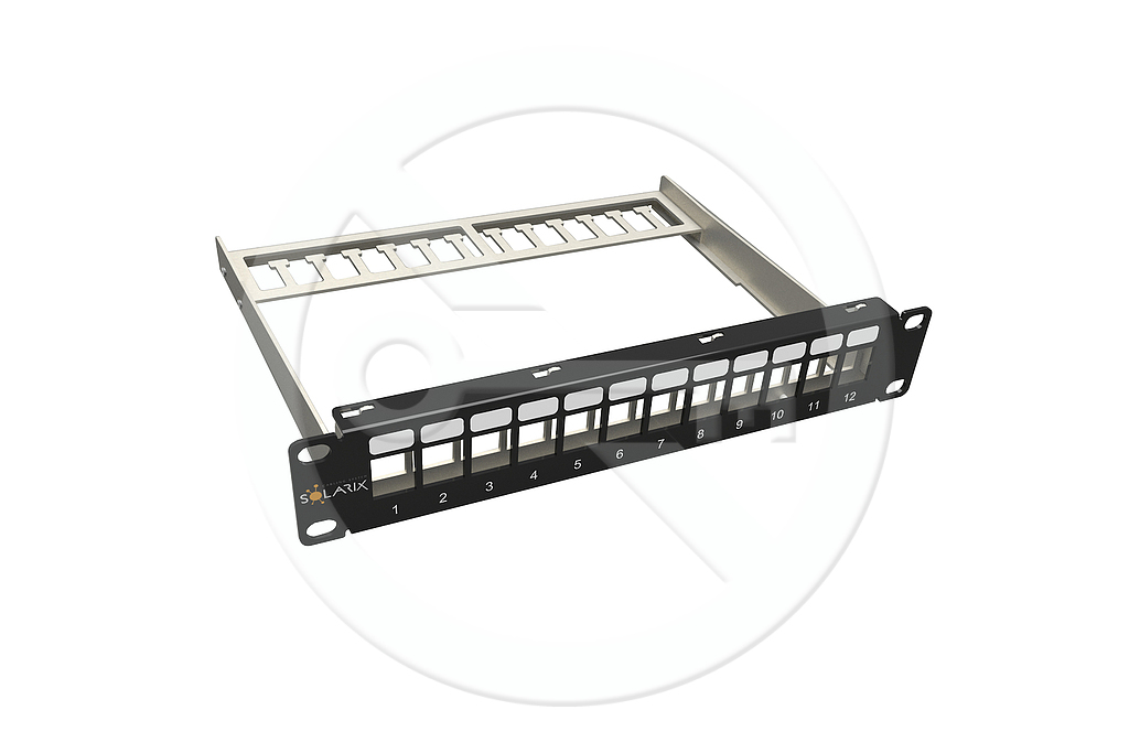 Produkt 10" modulární neosazený patch panel Solarix 12 portů 1U SX12M-0-STP-BK-UNI-N-10 - Solarix - Patch panely