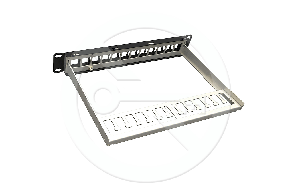 Univerzální neosazený 10" patch panel velikosti 1U určený pro 12 keystonů Solarix.