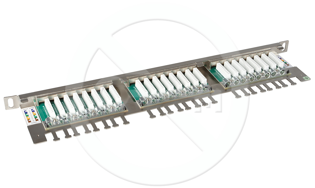 High-density 0,5U stíněný patch panel CAT5E 24 portů s vyvazovací lištou.