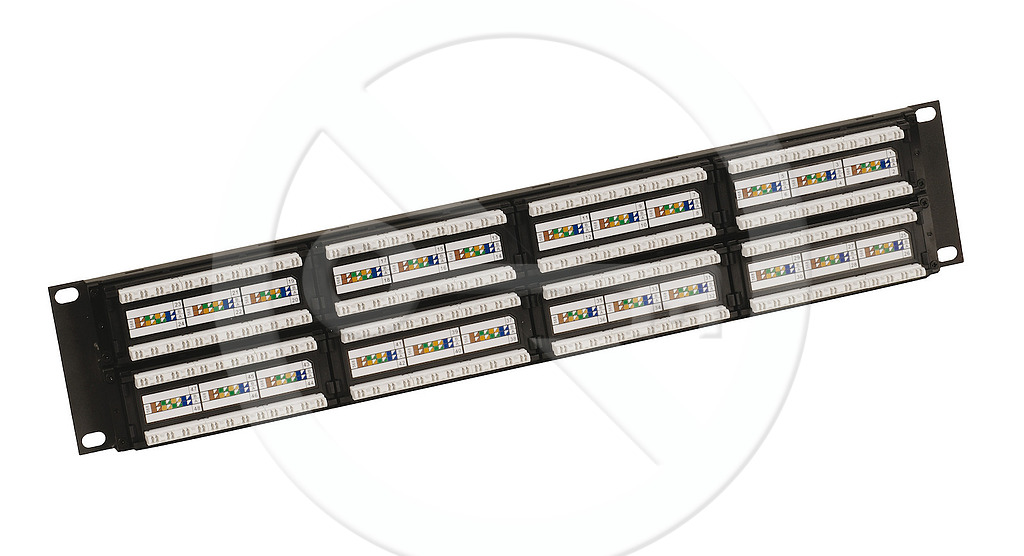 Nestíněný patch panel CAT6 48 portů testováný do 350 MHz, černý.