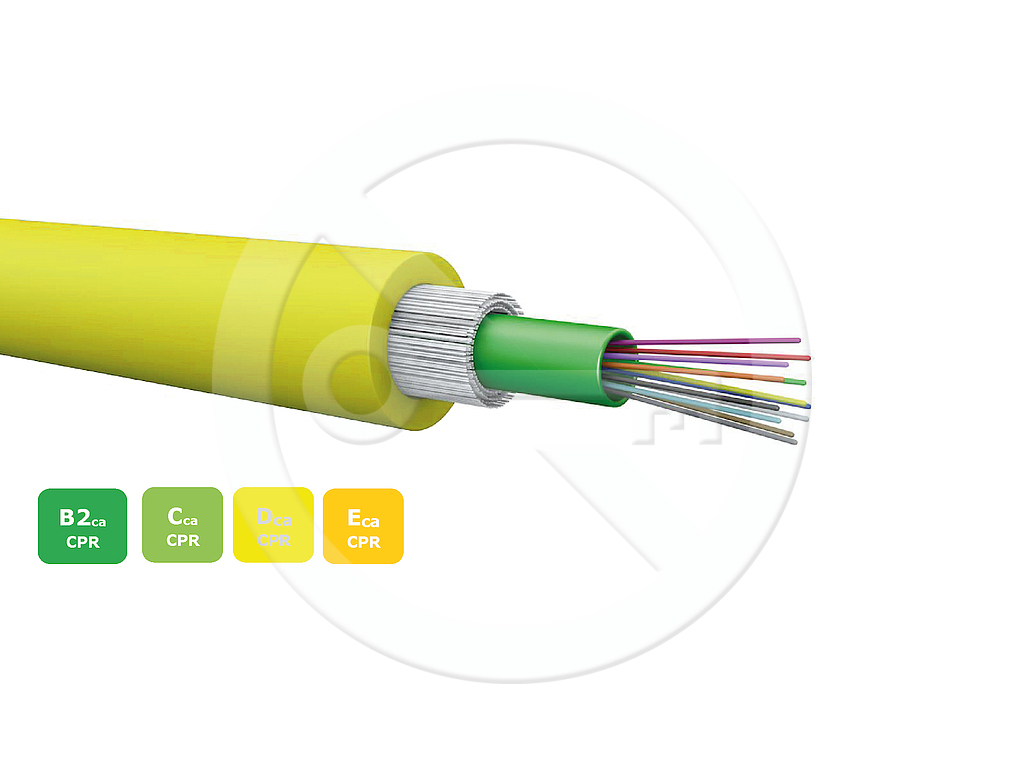 Univerzální optický kabel konstrukce CLT s LSOHFR pláštěm a třídou reakce na oheň B2ca-s1a,d1,a1 4 vlákna SM 9/125.