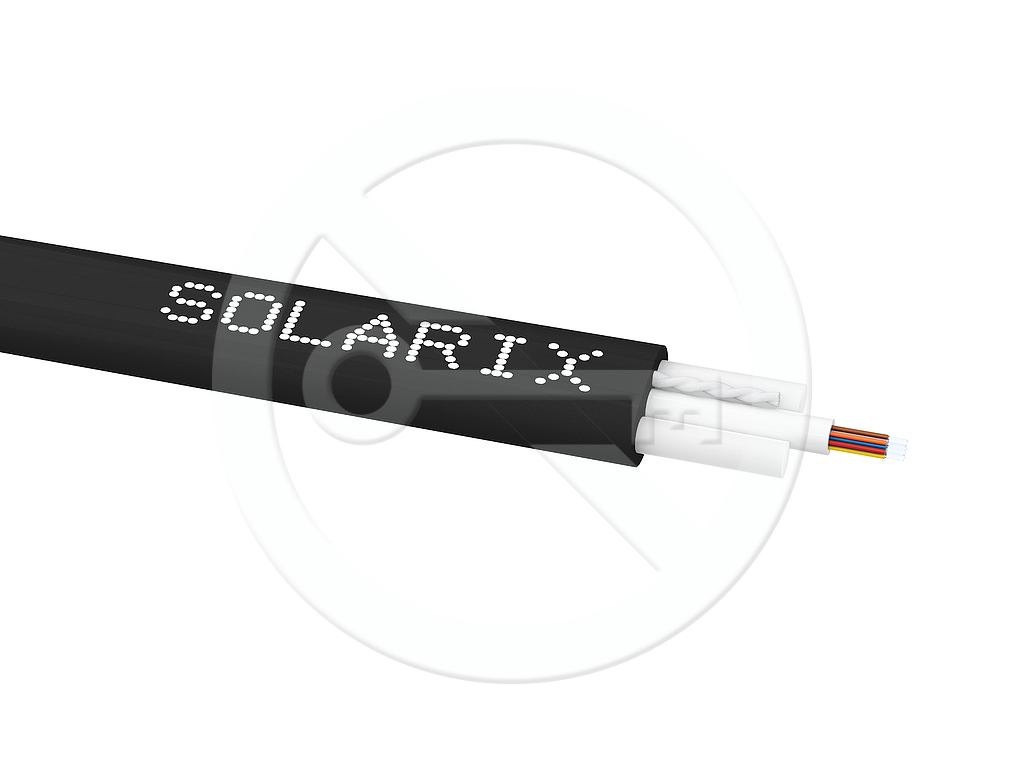 Venkovní optický samonosný Flat DROP kabel Solarix SXKO-FLAT-DROP-12-OS-HDPE s třídou reakce na oheň Fca. Kabel je ploché konstrukce a je ideální pro nadzemní instalace s převěsy až do 80m při použití kotev pro ploché kabely, Kabel je také možno instalovat zatažením do HDPE trubek . Samotná vlákna typu G.657.A1 jsou uložena v centrální trubičce plněné gelem, díky čemuž jsou chráněna před vniknutím vody. Kabel obsahuje dva FRP tahové členy uvnitř pláště pro zvýšení mechanické odolnosti. Optický kabel neobsahuje žádné kovové prvky a je plně dielektrický.