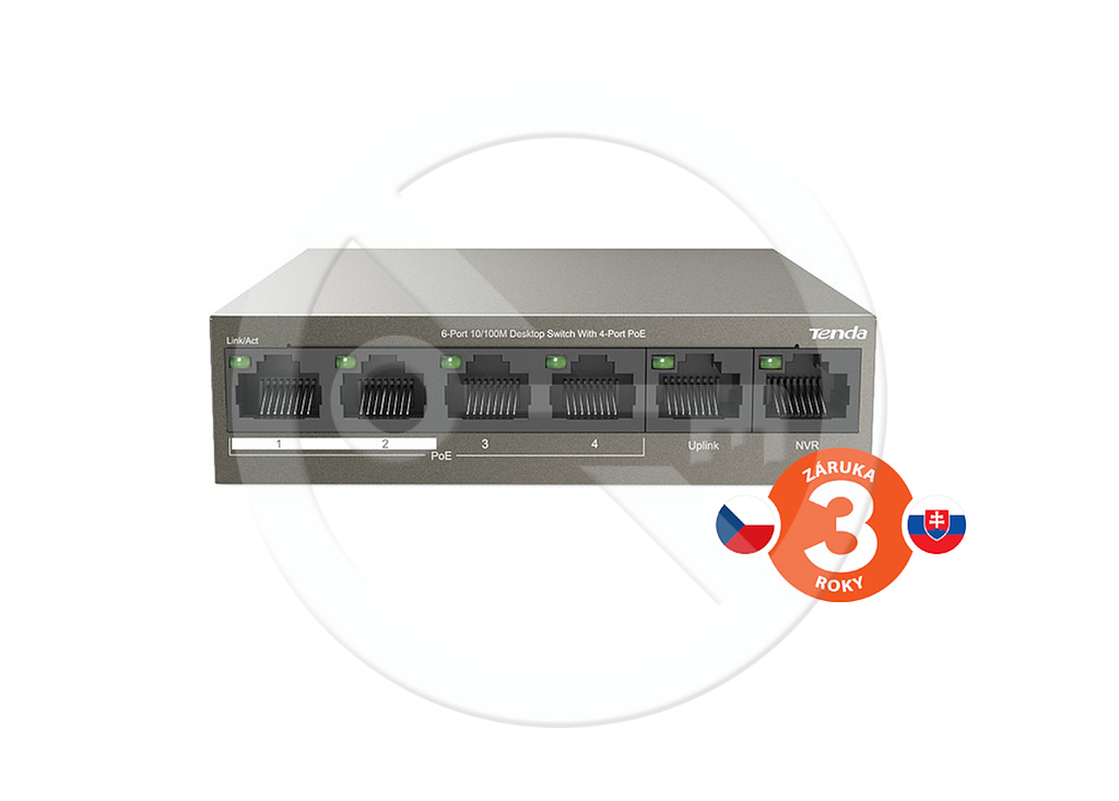 • Porty: 6x 10/100Mbps RJ45 auto-negace, Port1 až Port4 podporuje IEEE802.3 at/af PoE standart
