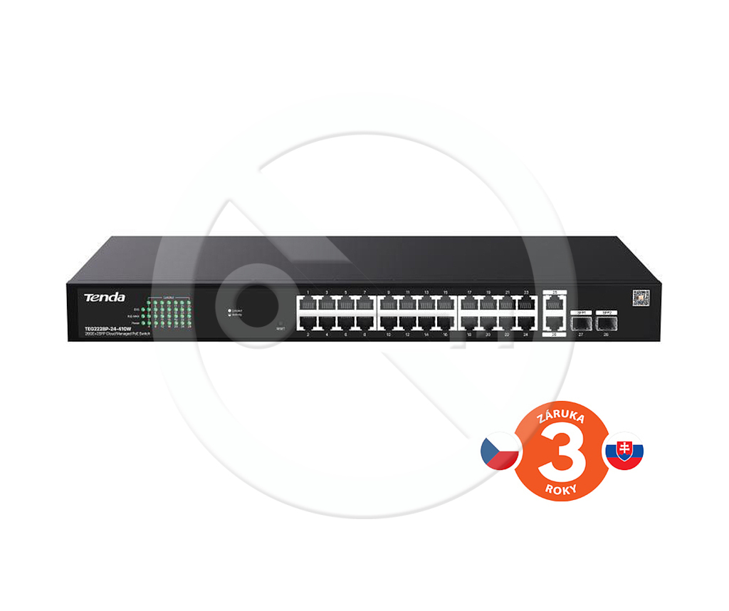 Tenda TEG2228P-24-410W Cloud PoE Managed Gigabit Switch, 24x PoE, 26x RJ45, 2x SFP