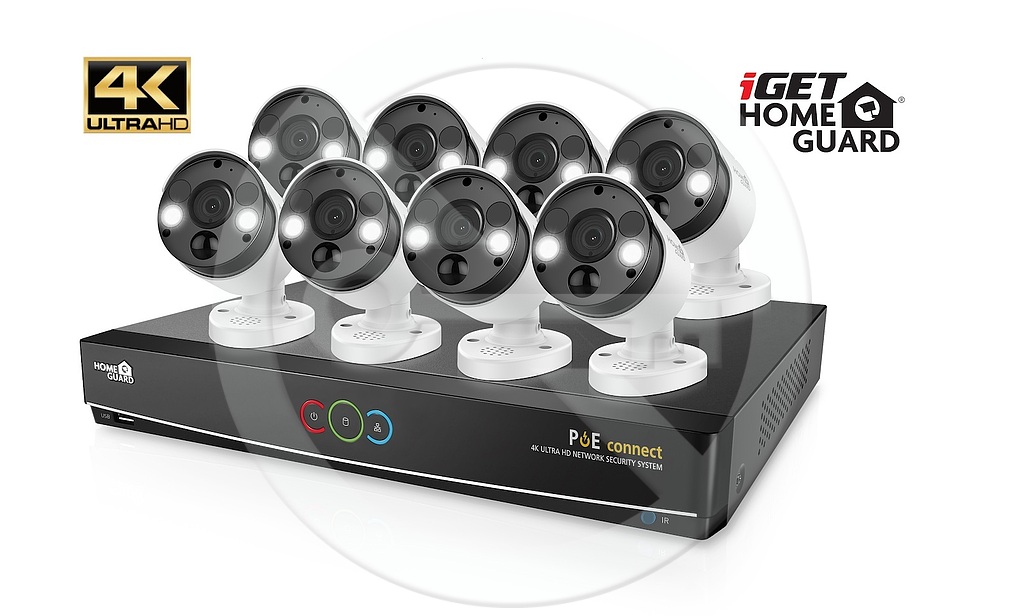 iGET HOMEGUARD HGNVK164908 - Ultra HD 4K systém s PoE napájením, 16-kanálové NVR + 8x HGNVK936CAM 4K kamera