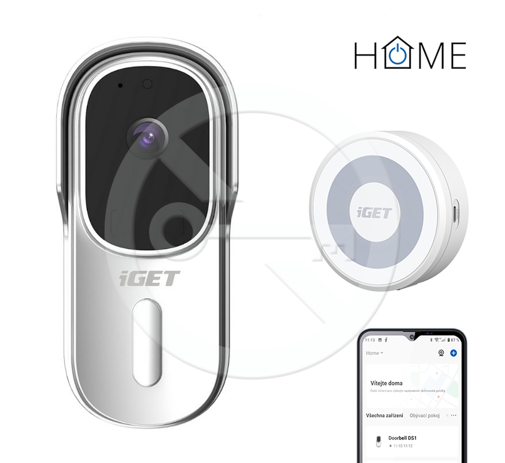 iGET HOME Doorbell DS1 White + iGET CHIME CHS1 White - Inteligentní bateriový videozvonek v setu s reproduktorem
