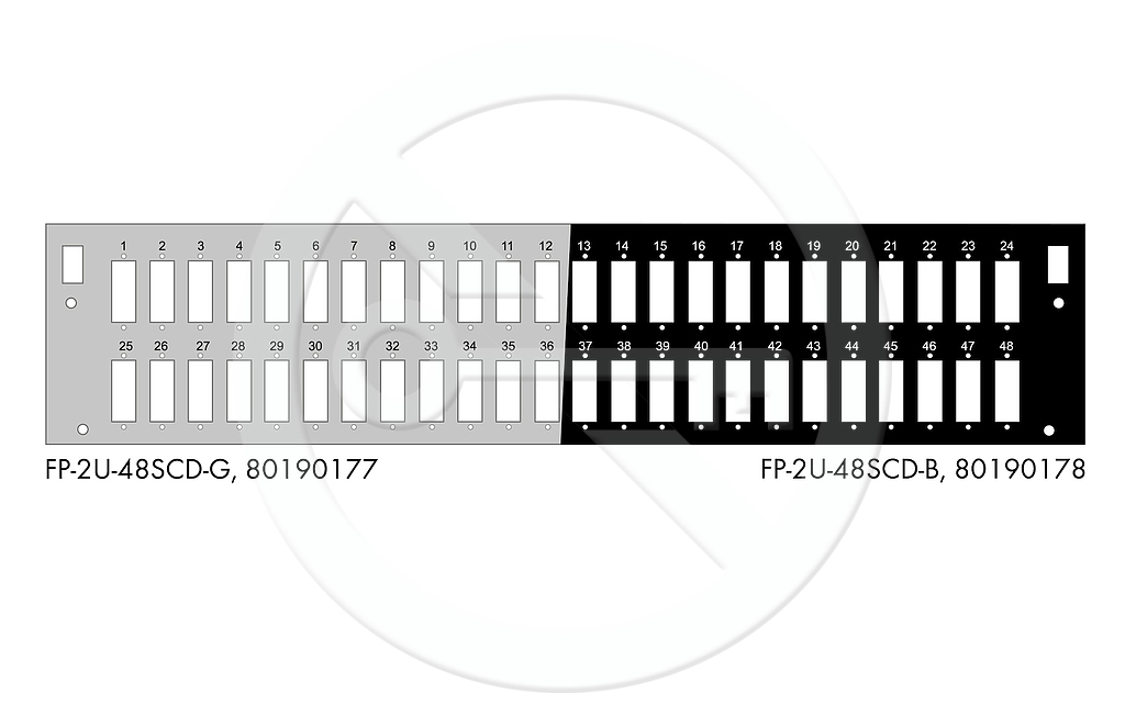Čelo optické vany 2U pro 48 SC duplex RAL9003 vhodné pro optické vany FOS-2U-B/G obj, č, 86010305 a 86010307. Čelo SC duplex lze použít pro LC quadruplexní optické adaptéry.
