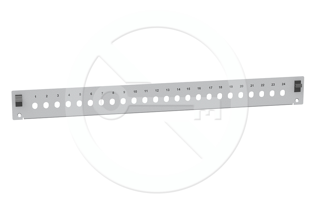 Čelo optické vany 1U pro 24 ST simplex RAL 7035 s montážními otvory v2 FP2-1U-24ST-G
