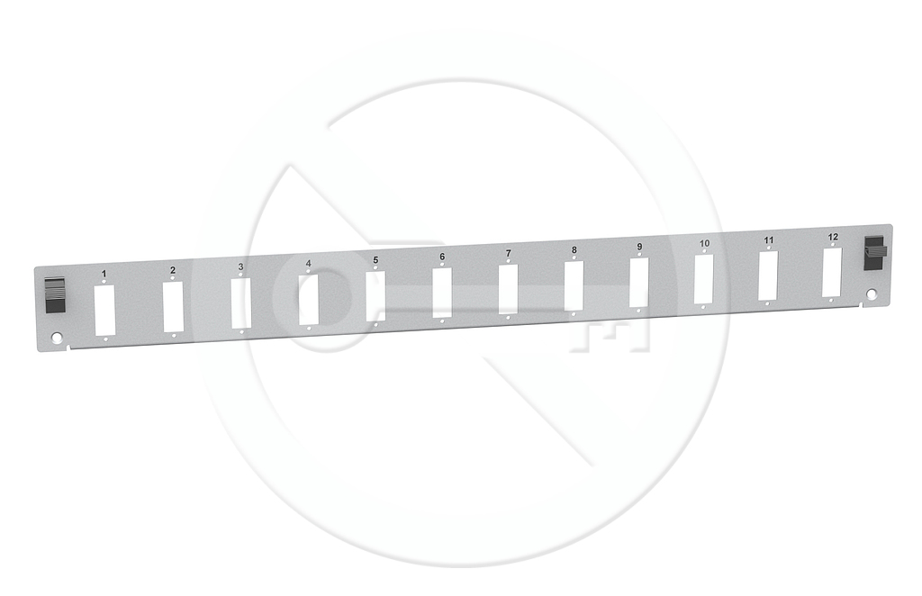 Čelo optické vany 1U pro 12 SC duplex RAL7035 s montážními otvory v2 FP2-1U-12SCD-G