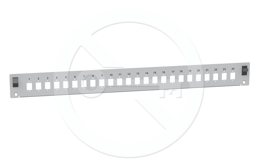 Čelo optické vany 1U pro 24SC simplex/LC duplex/E2000 RAL7035 s montážními otvory v2 FP2-1U-24SCS-G