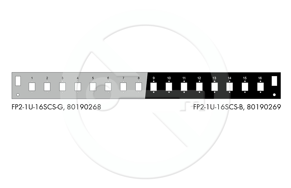 Čelo optické vany 1U pro 16SC simplex/LC duplex/E2000 RAL7035 s montážními otvory v2 FP2-1U-16SCS-G
