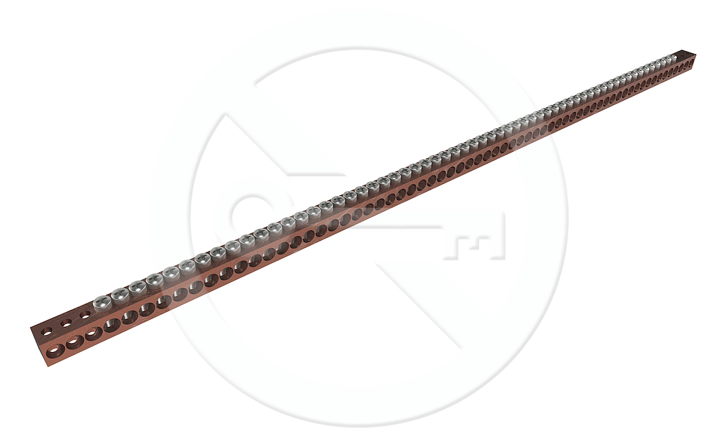 Tato měděná zemnící lišta je osazena 25 ks svorek, které jsou určeny k propojení uzemnění zařízení v rozvaděči. Lišta je určena k instalaci do 19" rámu. Maximální průměr kabelu je 5mm. To znamená typicky maximální průřez vodiče