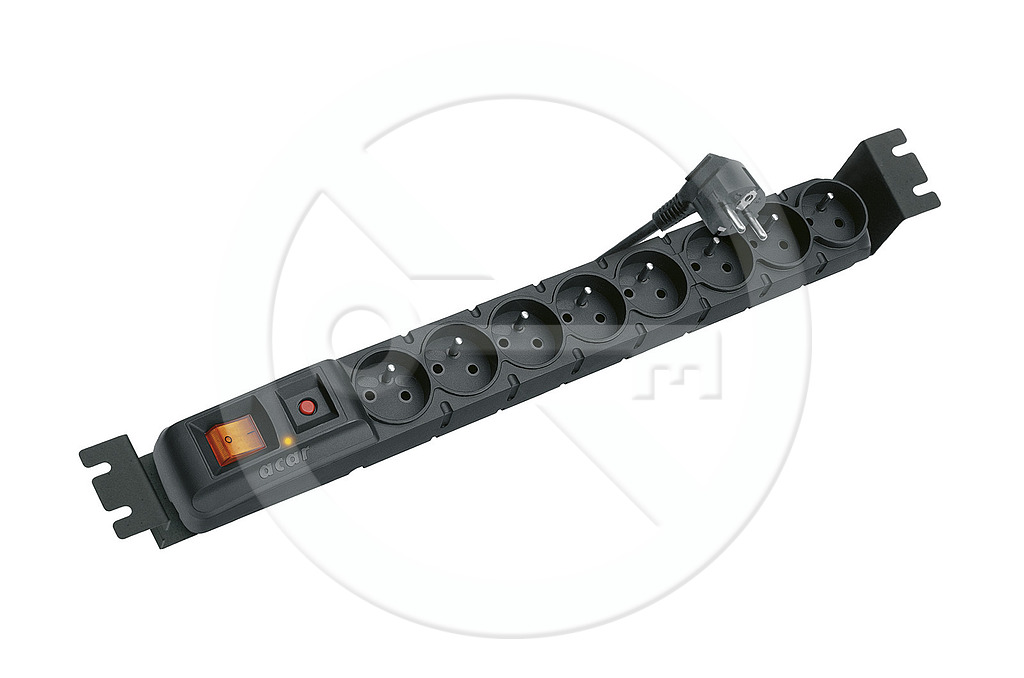 Napajeci panel ACAR S8 FA 3m 8 pozic BK včetně držáků do 19" lišt 1U, ACAR-S8-FA