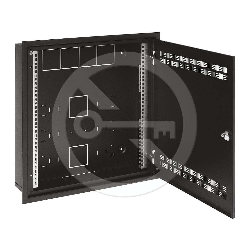 Rozvaděč SOHO LC-18 do zdi s lištami 2U, 4U a 11U, 550x550 černá RAL9005 s rámečkem k zazdění