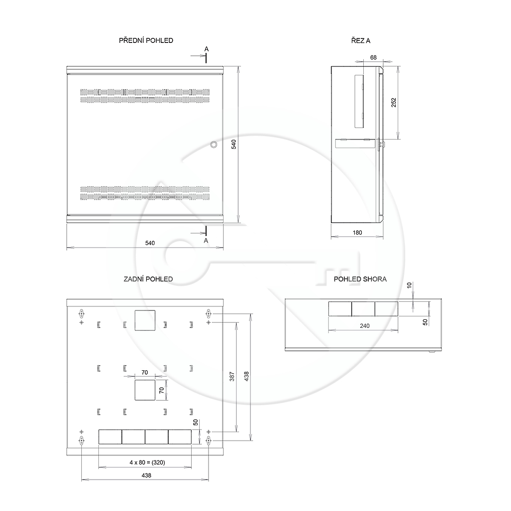 - venkovní rozměry (Š x V x H) 540 x 540 x 180 mm