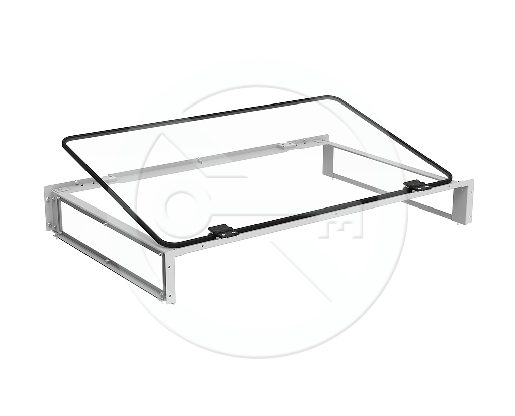 Střešní modul s vnitřní výškou 150 mm, navržený pro pro šířku studené uličky 1200mm.Horní průhledný modul je výklopný.
