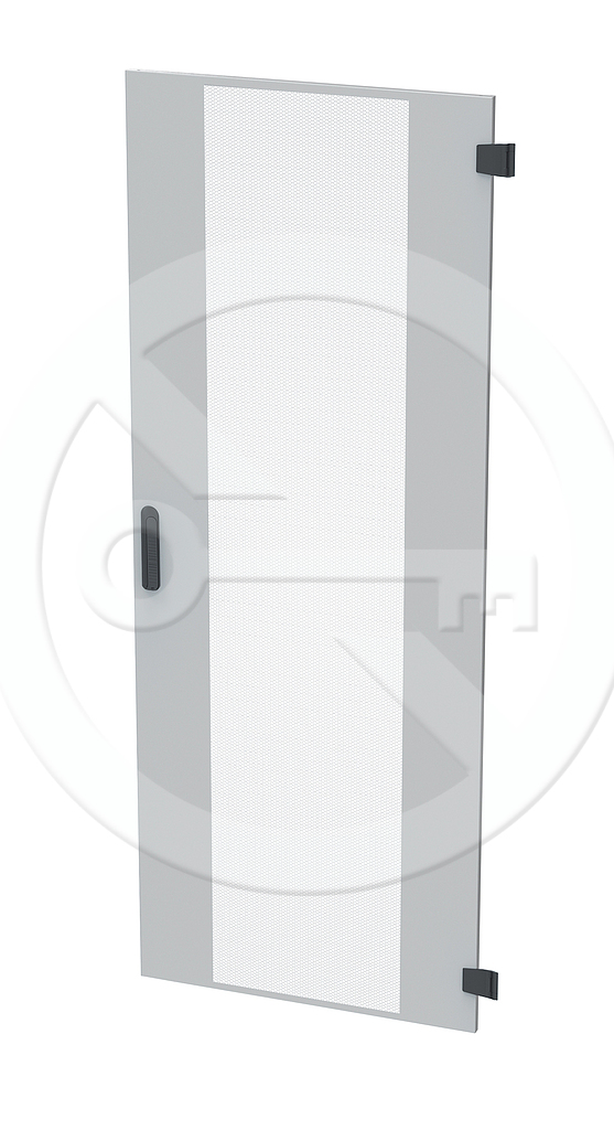 Dveře plechové s perforací pro rozvaděč LC-50, provedení v barvě světle šedá RAL 7035, tříbodové zamykání, výklopná klika.