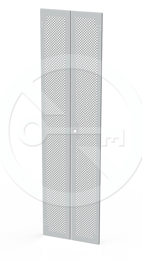 Dveře plechové s perforací LC-50, 45U, šířky 600, dvoukřídlé RAL7035, 1-b zámek