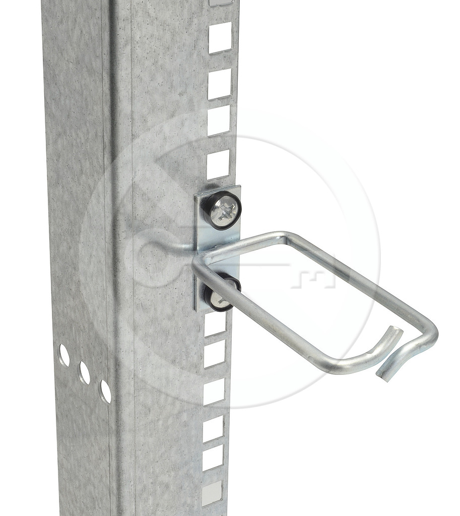 Vyvazovací háčky s kovovými oky umožňují přehlednou organizaci kabelových svazků v rozvaděčích.