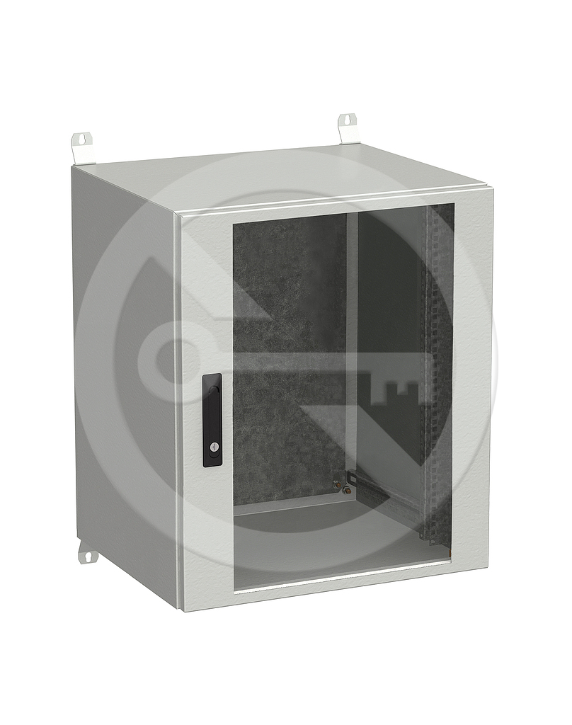 Rozvaděč tvoří samonosná svařovaná konstrukce z plechu tloušťky 1,5 mm, která je uzpůsobená pro připevnění na stěnu pomocí čtveřice dodávaných závěsů. Zajištění dveří proti otevření je provedeno pomocí jednobodových cylindrických zámků, nebo pomocí tříbodového zámku, výklopné kliky s vložkou. Z vnitřní strany dveří jsou přivařeny dva vertikální perforované rámečky, které zvyšují tuhost a zároveň slouží k vyvazování a uchycení výstroje skříně. Zemnicí propojení skříně je provedeno moderní technologií kapacitního navařování pokovenými šrouby. Těsnění dveří je provedeno technologií litého těsnění. Přístroje lze do skříně montovat na 19" lišty s pozinkovaného plechu. V zadní části rozvaděče je také upevněn montážní panel z pozinkovaného plechu síly 2 mm. 19" lišty i montážní panel lze nastavit plynule do požadované hloubky v rozvaděči.