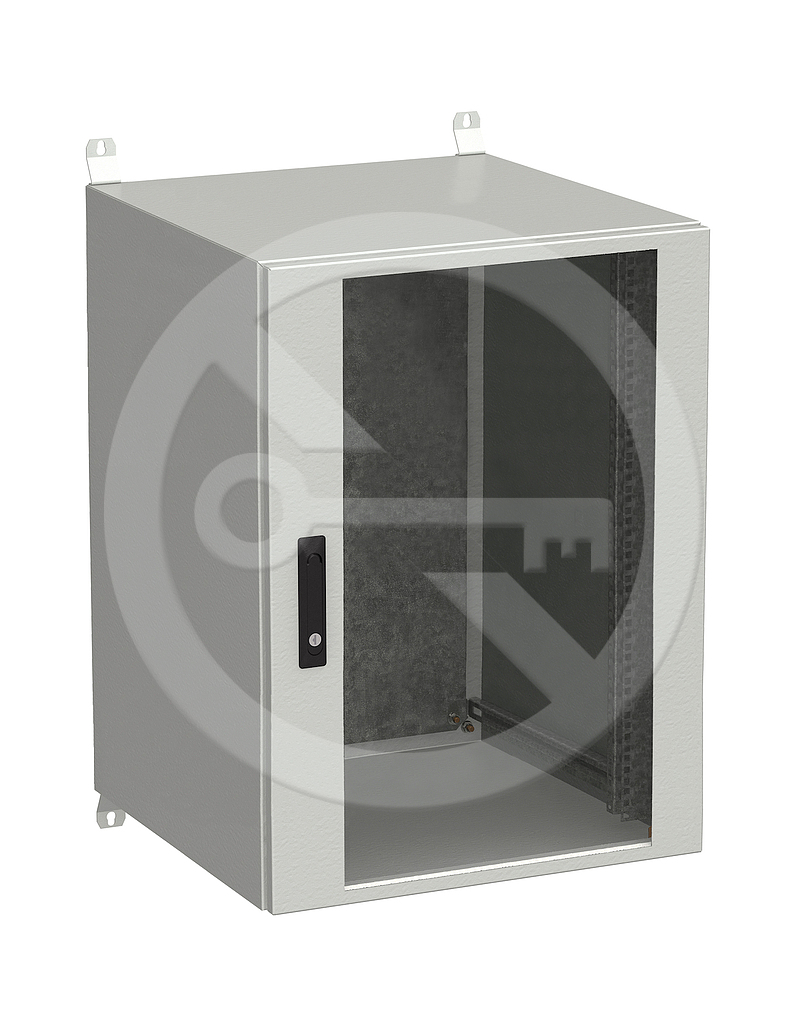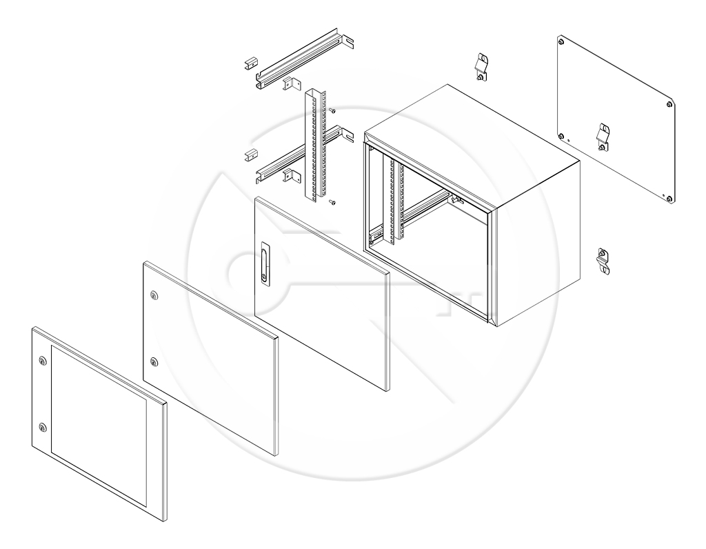 Rozvaděč tvoří samonosná svařovaná konstrukce z plechu tloušťky 1,5 mm, která je uzpůsobená pro připevnění na stěnu pomocí čtveřice dodávaných závěsů. Zajištění dveří proti otevření je provedeno pomocí jednobodových cylindrických zámků, nebo pomocí tříbodového zámku, výklopné kliky s vložkou. Z vnitřní strany dveří jsou přivařeny dva vertikální perforované rámečky, které zvyšují tuhost a zároveň slouží k vyvazování a uchycení výstroje skříně. Zemnicí propojení skříně je provedeno moderní technologií kapacitního navařování pokovenými šrouby. Těsnění dveří je provedeno technologií litého těsnění. Přístroje lze do skříně montovat na 19" lišty s pozinkovaného plechu. V zadní části rozvaděče je také upevněn montážní panel z pozinkovaného plechu síly 2 mm. 19" lišty i montážní panel lze nastavit plynule do požadované hloubky v rozvaděči.