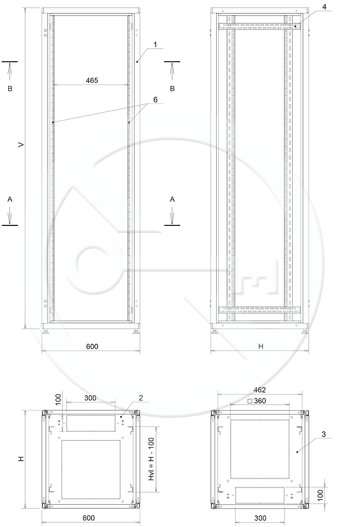 Rozvaděč obsahuje dva páry 19" vertikálních lišt s potiskem pro identifikaci výšky umístění montovaných zařízení. Konstrukce rozvaděče umožňuje měnit polohu vertikálních lišt ve směru hloubky rozvaděče.