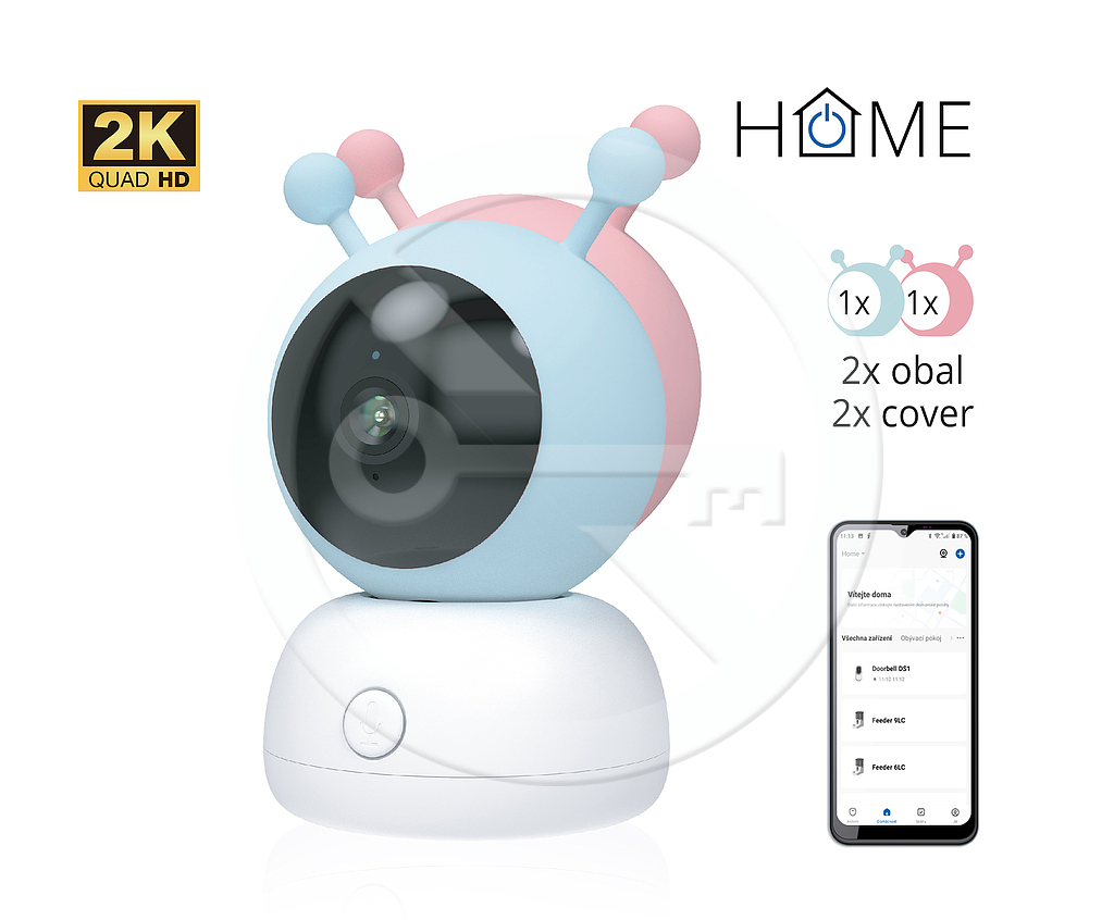 Bezdrátová Wi-Fi chůvička s teploměrem a vlhkoměrem, přehráváním libovolných melodií, obousměrným přenosem zvuku, detekcí pohybu a pláče, automatickým natáčením za pohybem, vysokým rozlišením 2K (3MPx), a dalšími funkcemi. V balení obsahuje hned dva vyměnitelné kryty - v modré a růžové barvě. Tato chůvička s online sledováním pomocí mobilního telefonu nebo tabletu je ideální pomocník pro hlídání nejmenších členů vaší rodiny. Kameru stačí připojit k napájení a nainstalovat aplikaci iGET HOME, pomocí aplikace se připojí k Wi-Fi síti a nastavení je hotové. Podporuje ukládání záznamů a fotografií na microSD kartu (slot až 128 GB) nebo Cloud. Tlačítko Call pro volání na mobilní zařízení. Rozlišení 2K (3 MPx, 2304 x 1296 px, 25 fps), denní i noční provoz, noční IR přisvětlení až 10 m, Wi-Fi b/g/n, mikrofon a reproduktor.